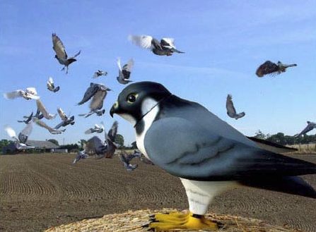 • Greifvogelattrappen erhöhen den natürlichen Feinddruck in einer betroffenen Umgebung