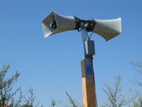 Der R56 ist ein extrem leistungsstarkes Gerät, mit Hochleistungsverstärker und 2 großen Druckkammerlautsprechern. Die Lautsprecher lassen sich in beliebigen Winkel zueinander montieren. Die Geräteausführung ist sehr hochwertig mit gedichtetem Aluminium Gehäuse für die Elektronik. Aufgrund der hohen möglichen Lautstärke sollte er nicht in Siedlungsnähe eingesetzt werden. Die hohe Leistung fordert naturgemäß einen höheren Stromverbrauch. Deshalb statten wir den rein automatisch betriebenen R56 mit einer 6W oder 20W Solarversorgung aus. Diese lädt die 12V Betriebsbatterie und verringert dadurch den Arbeitsaufwand des Batterie-nachladens ganz erheblich.